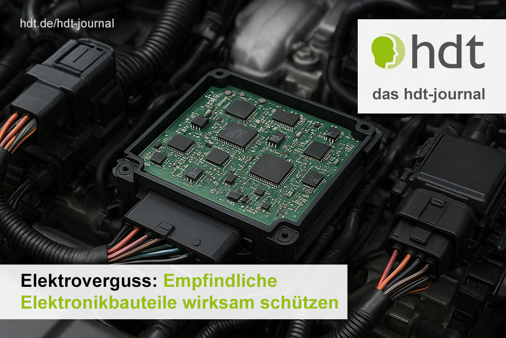 Richtig gemacht, sorgt Elektroverguss über den Automobilsektor hinaus für einen zuverlässigen Schutz elektronischer Produkte aller Art vor Feuchtigkeit, Temperaturschwankungen sowie mechanischen und chemischen Einflüssen. Dass das HDT in dem Zusammenhang den Arbeitsschutz mitdenkt, deckt sich – aus Tradition – mit dem interdisziplinären Ansatz.